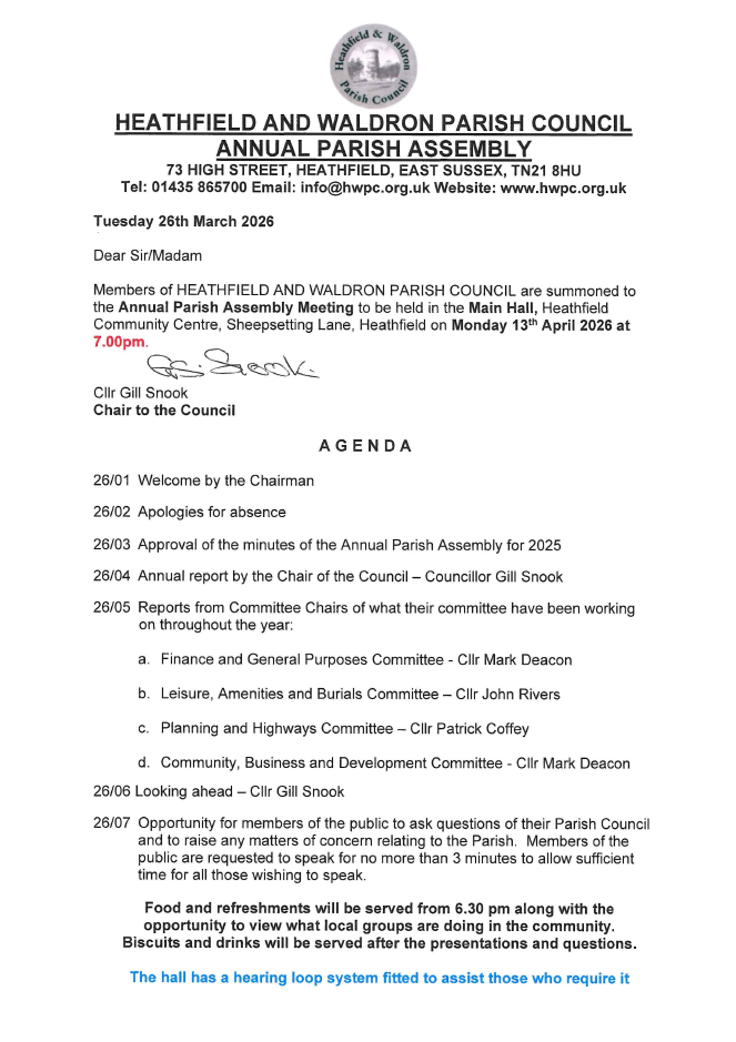 Join us for the Annual Parish Assembly on Monday 13th April at 7.00pm