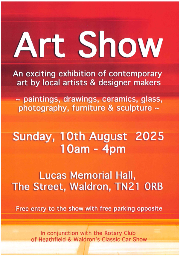 Sunday 10th August 2025 10am – 4pm at Lucas Memorial Hall, The Street, Waldron, TN21 0RB